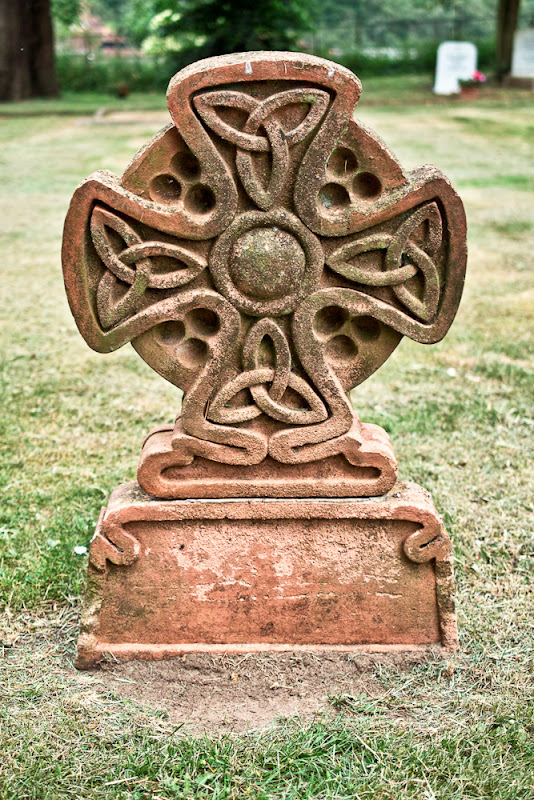 Externally, the chapel is decorated with terracotta panels with a hybrid of Celtic patterns and Art Nouveau forms. These motifs are further found in many of the grave markers throughout the cemetery.